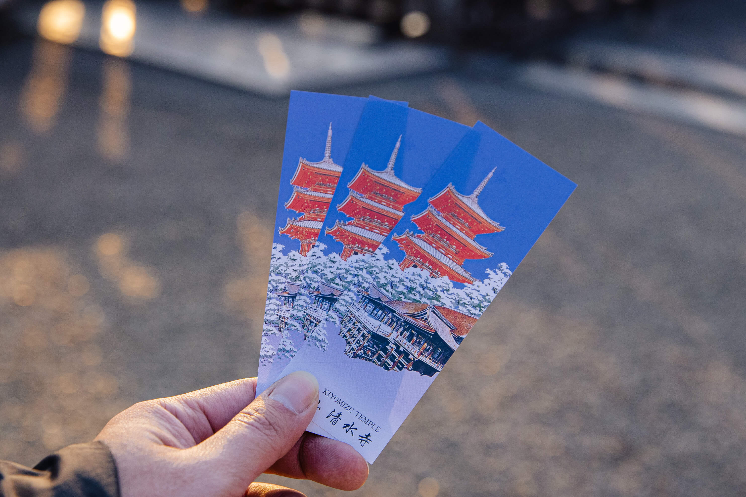 京都漫步的終點站是日本最古老的寺廟、世界文化遺產「清水寺」,一月份拿到的是清水寺雪季樣貌的門票。京都是四季分明的城市,四個季節都擁有不同的景色:春季賞櫻、秋季賞楓、冬季賞雪,相信在不同時節回訪清水寺一定都會被驚艷。