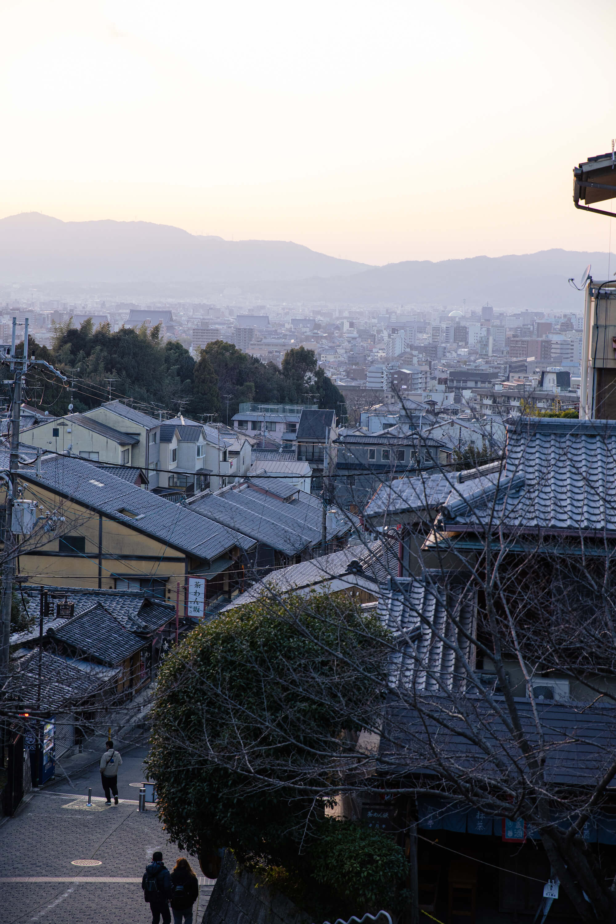 帶著夕陽的餘暉,遠眺整個京都市區。