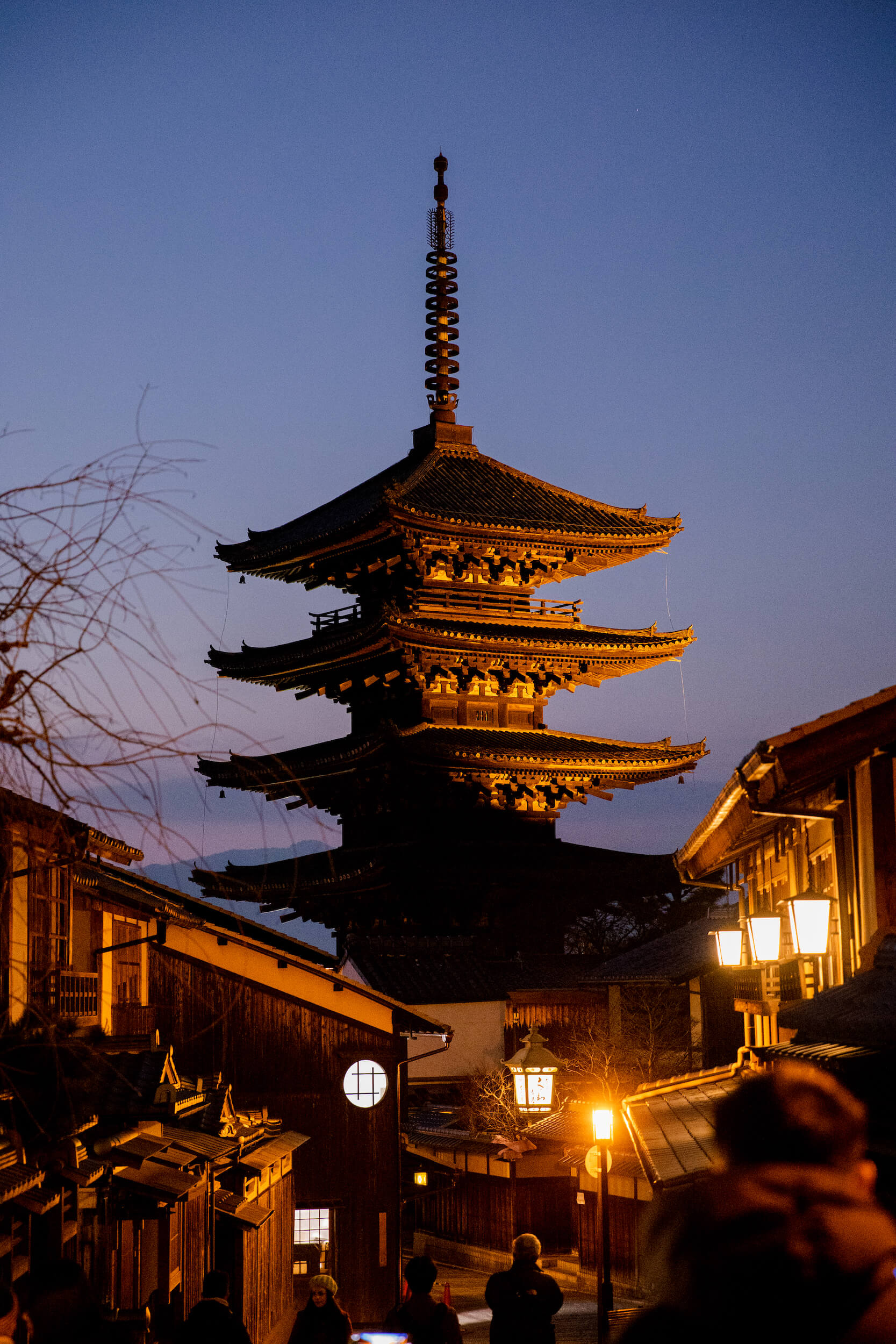 落日時分,陽光遍佈於清水寺每座建築物上,每一處都在閃閃發光。