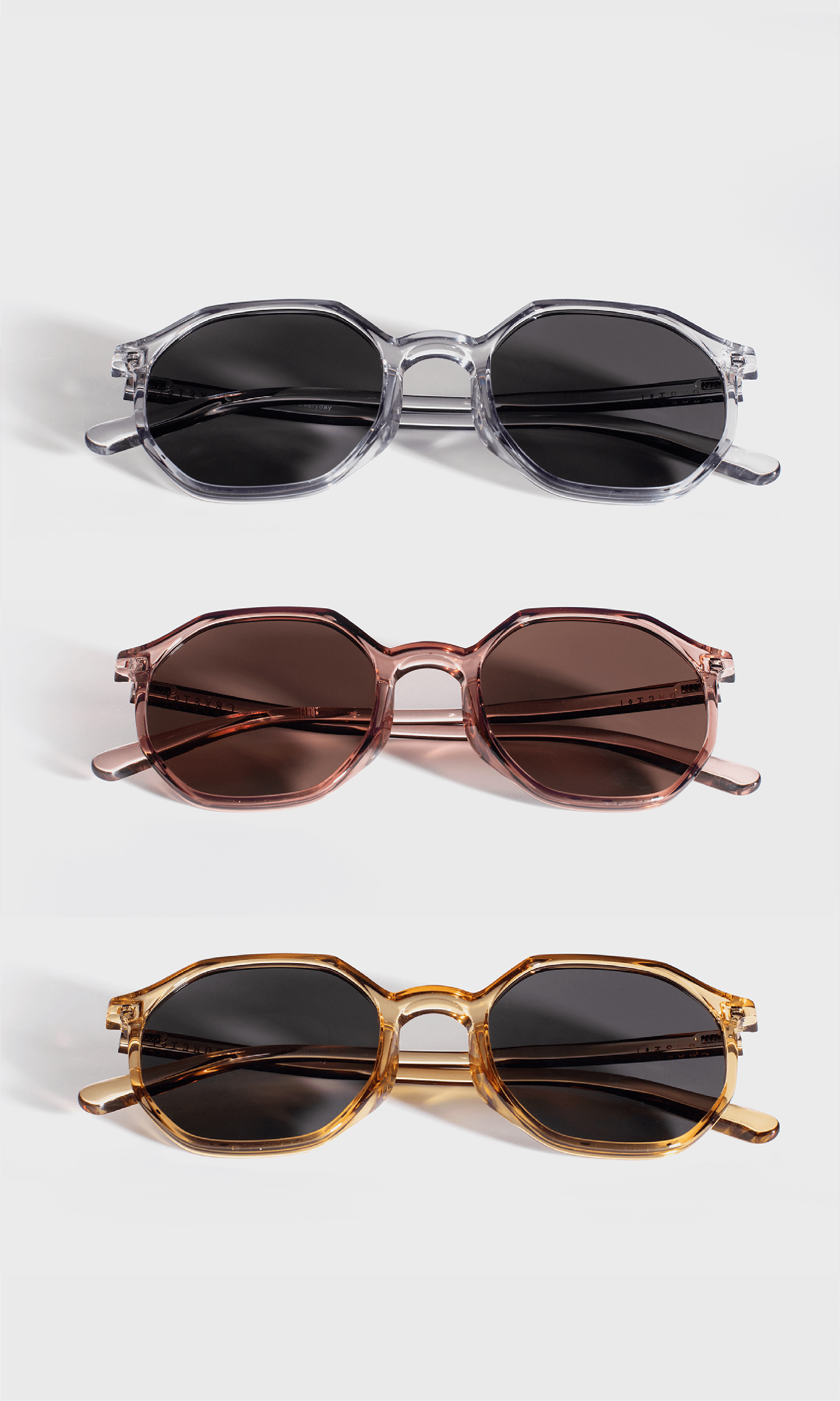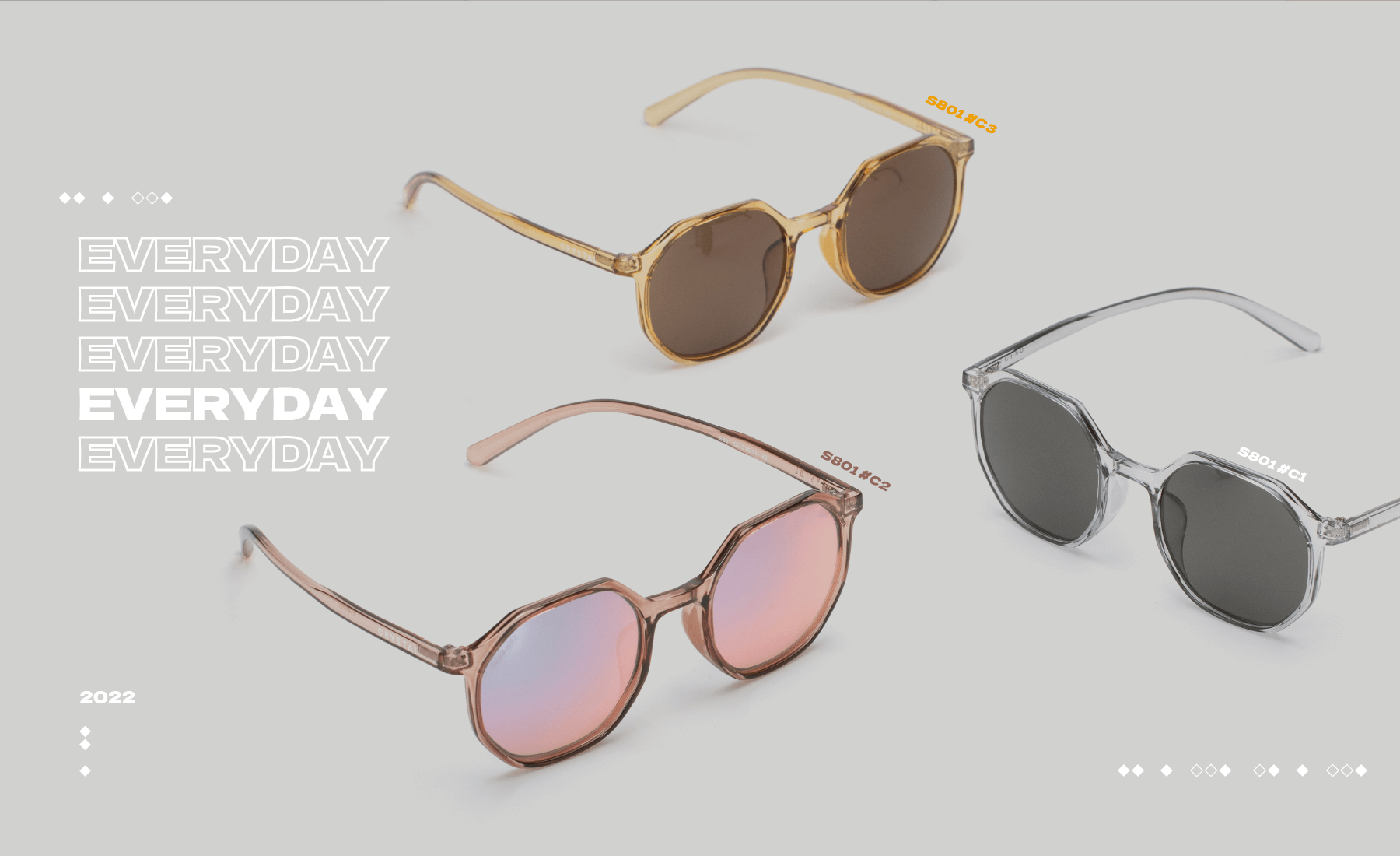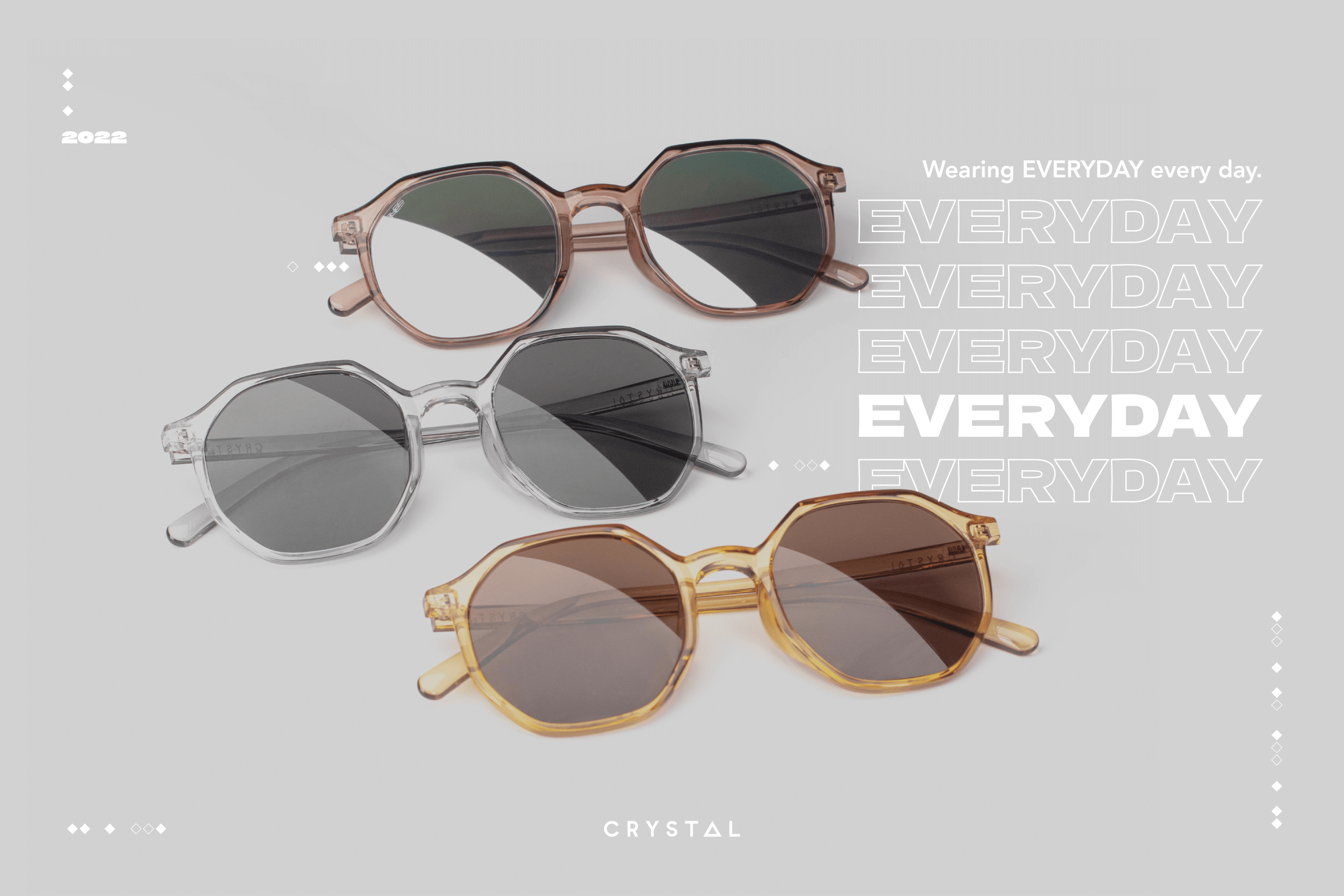 《 EVERYDAY 》印製了銀色LOGO點綴側面鏡腳,依照不同風格推出了三種鏡框顏色選擇:個性酷帥的透灰色、氣質復古的紅酒色,以及活潑熱情的暖黃色。
