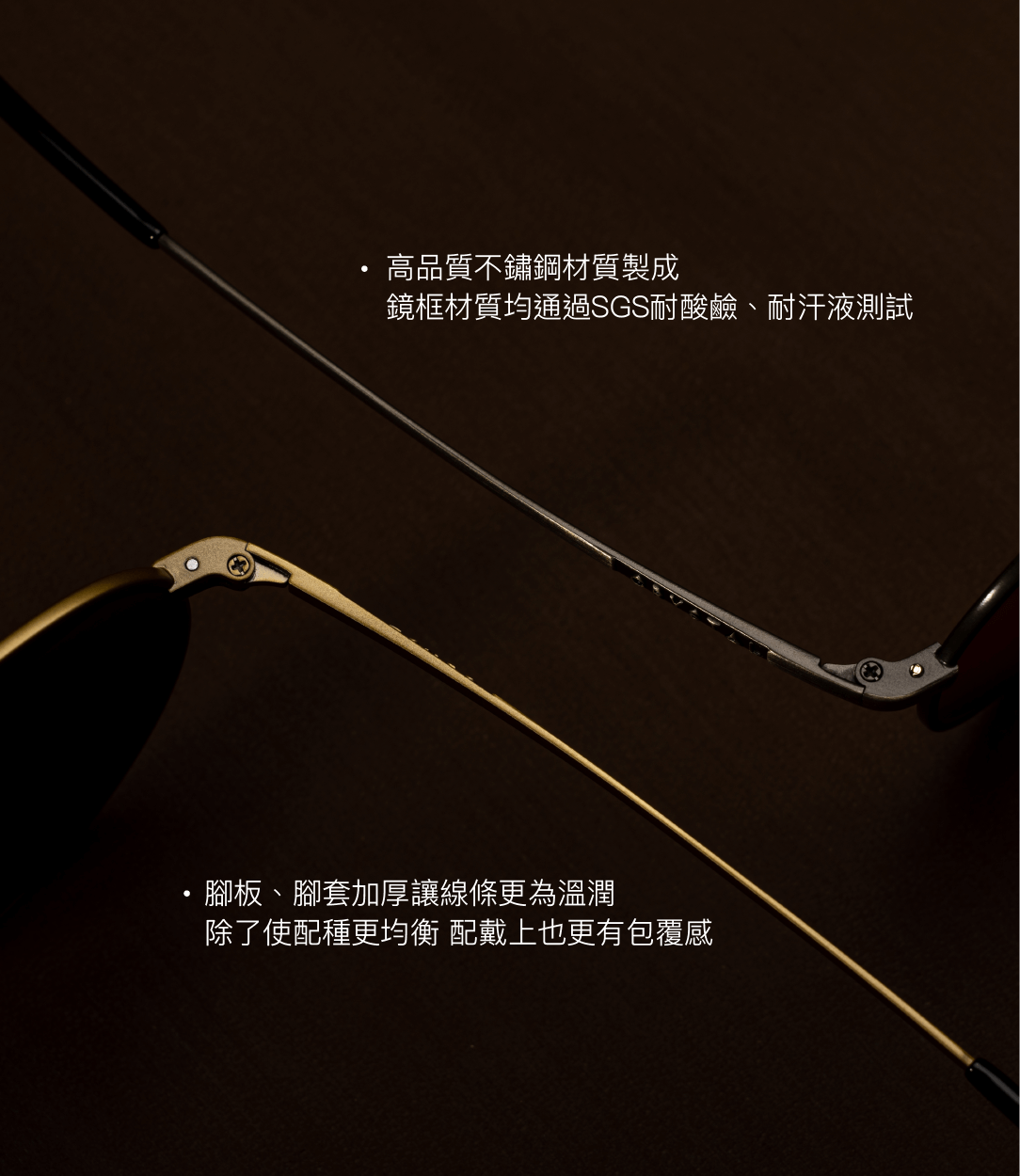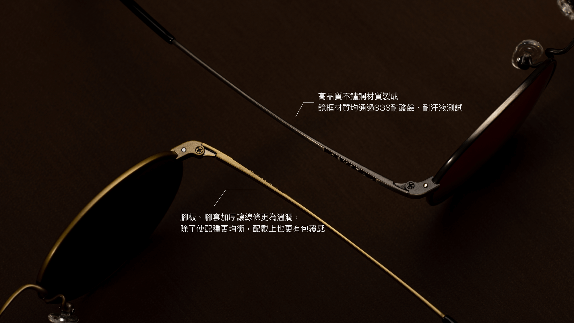 鏡片通過美國FDA耐衝擊測試,並符合多國太陽眼鏡規範。全系列產品均已投保1000萬產品責任險。