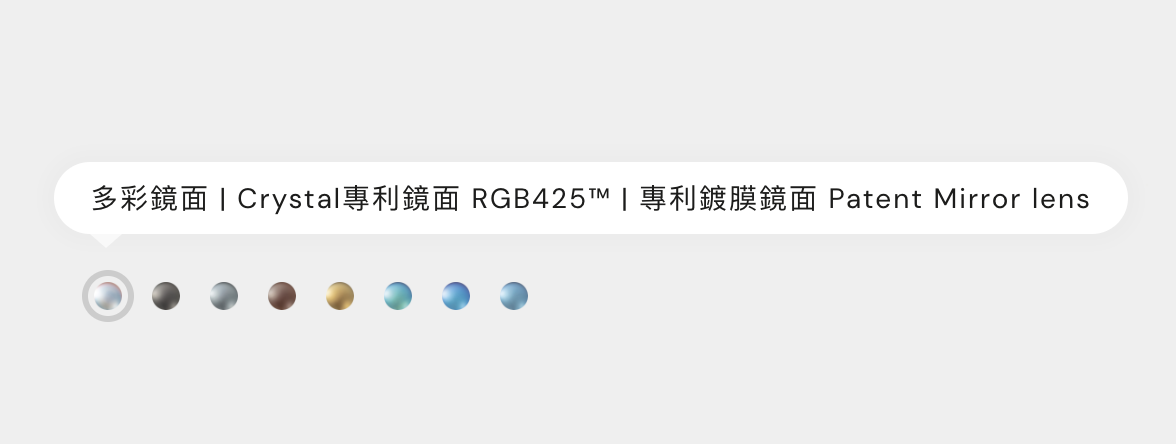 CRYSTAL是以鏡片為特色的太陽眼鏡品牌,同款框型最多可以提供 八種鏡片 配色,以下介紹八種鏡片彼此之間的差異在哪!