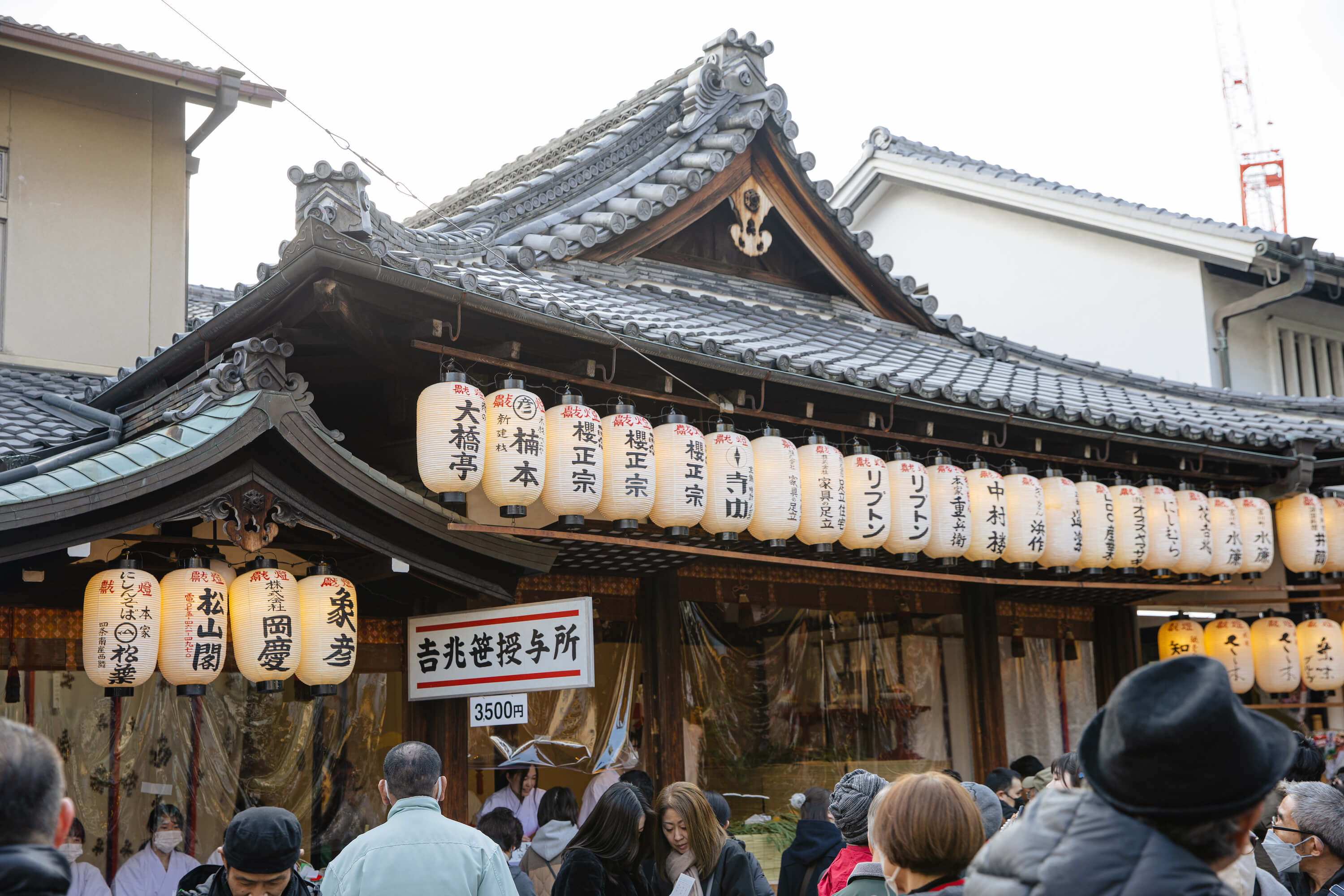 在前往清水寺的路上經過許多神社了,當然也跟著進去湊熱鬧,即使不能完全理解的參拜過程但能感受到當地人的興奮之情!每個人手上都會拿著一支「福笹」,上面掛著許多的祈福物,在新的一年把滿滿的祝福帶回家。