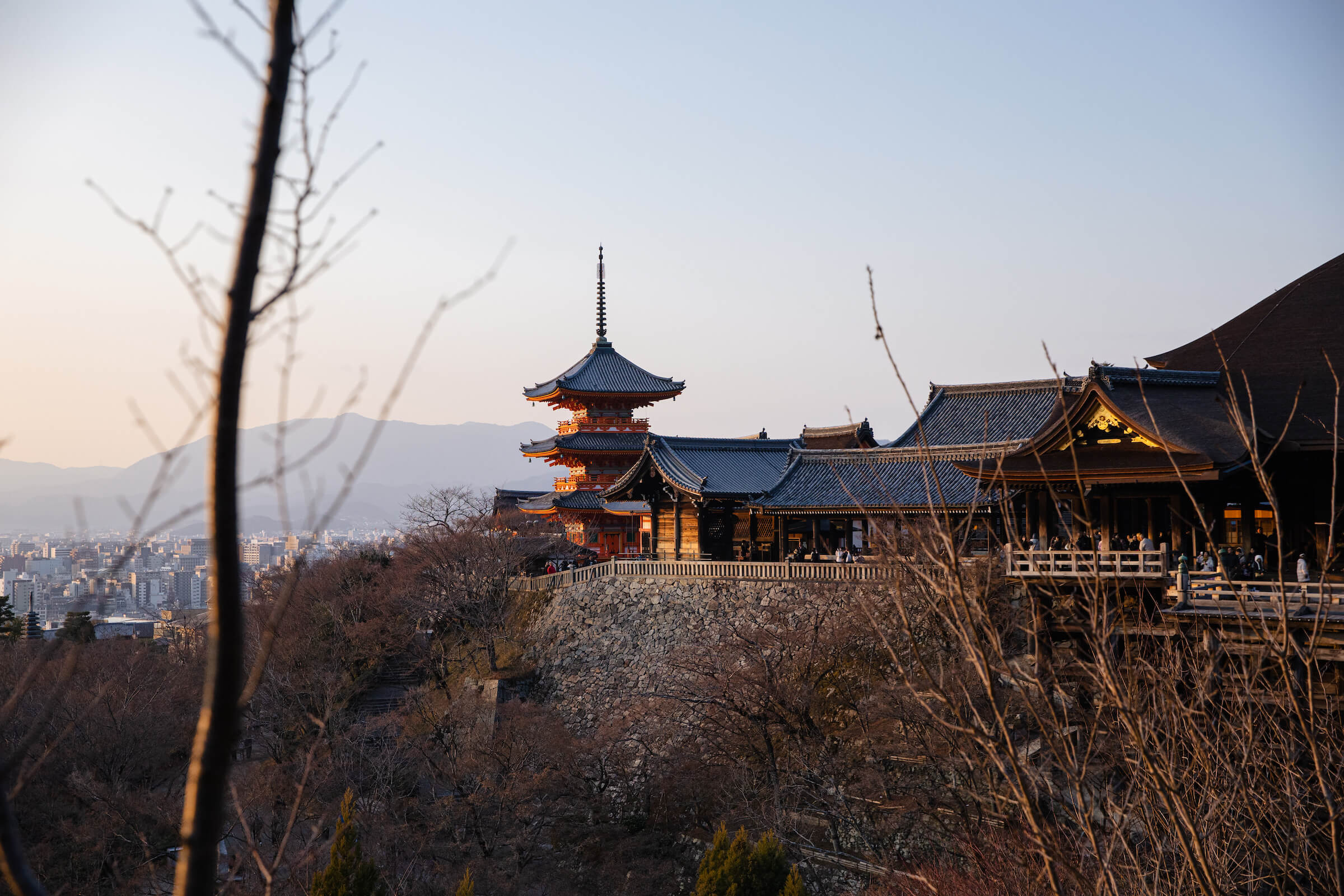 落日時分,陽光遍佈於清水寺每座建築物上,每一處都在閃閃發光。